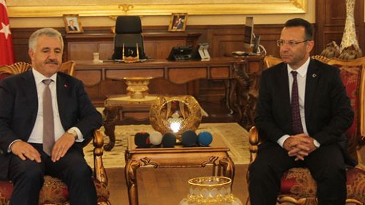 Ulaştırma, Denizcilik ve Haberleşme Bakanı Ahmet Arslan, Kocaeli Sanayi Odası’nın meclis toplantısının ardından Vali Hüseyin Aksoy’u ziyaret etti. Valiliğe gelen Bakan Arslan’ı kapıda Vali Yardımcıları Dursun Balaban ve Ekrem Erdoğan, İzmit Kaymakamı Ersin Emiroğlu, İl Emniyet Müdürü Necati Denizci, İl Jandarma Komutanı Albay Osman Aslan karşılarken ziyarette ise AK Parti Milletvekili Cemil Yaman, İlhan Bayram, Karayolları Genel Müdürü İsmail Kartal ve Bakanlık yetkilileri de yer aldı. Ziyarette Vali Hüseyin Aksoy ile bir araya gelen Bakan Arslan, öncelikle Valilik makamındaki şeref defterini imzaladı.