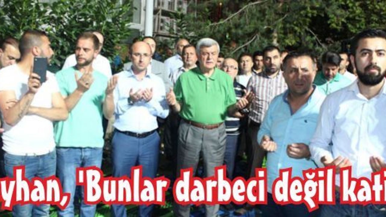 AK Parti il binası önünde partililerine seslenen AK Parti İl Başkanı Şemsettin Ceyhan, “Bunlar darbeci değil bunlar katil. İkinci bir emre kadar buradayız” ifadelerini kullandı