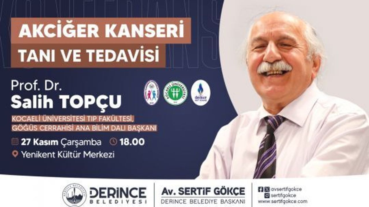 Derince Belediyesi, sağlık konferansları düzenlemeye devam ediyor. Bu kez Kocaeli Üniversitesi Tıp Fakültesi Göğüs Cerrahisi Ana Bilim Dalı Başkanı Prof. Dr. Salih Topçu, ilçe sakinleri ile buluşacak.