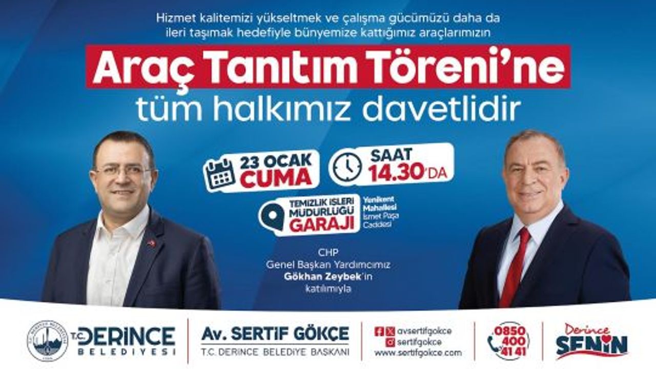 Derince Belediyesi, gerçekleştirilecek tanıtım törenine tüm ilçe halkını davet ederek, belediyenin hizmet gücünü artırmaya yönelik bu adımı birlikte paylaşmayı amaçlıyor.