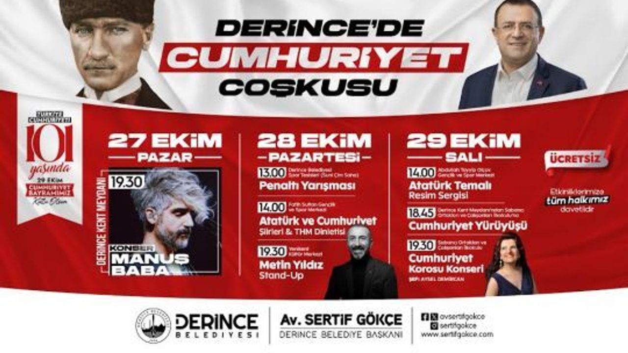Derince Belediyesi, üç gün boyunca sürecek olan bu etkinliklerle ilçe halkına unutulmaz bir Cumhuriyet Bayramı yaşatmayı hedefliyor.