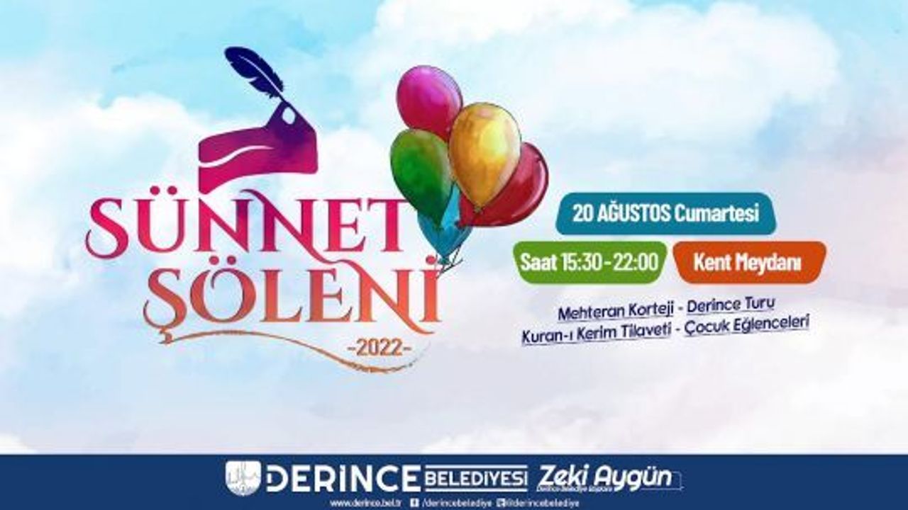 Belediye Başkanı Zeki Aygün tüm Derincelileri 20 Ağustos Cumartesi günü, sünnet