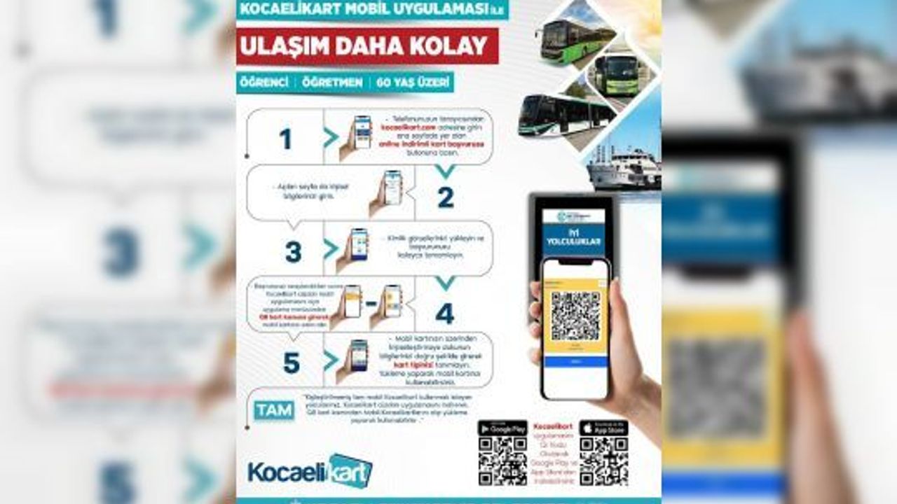 Kocaeli Büyükşehir Belediyesi, toplu ulaşımda dijital dönüşüm adımlarını sürdürüyor. Öğrenci, öğretmen ve 60 yaş üzeri vatandaşlara yönelik Kocaeli Kart başvuruları artık online olarak yapılabiliyor. Yeni sistem sayesinde bu gruplar, kart başvurusu ve bakiye yükleme işlemlerini internet üzerinden kolayca gerçekleştirebilecek.