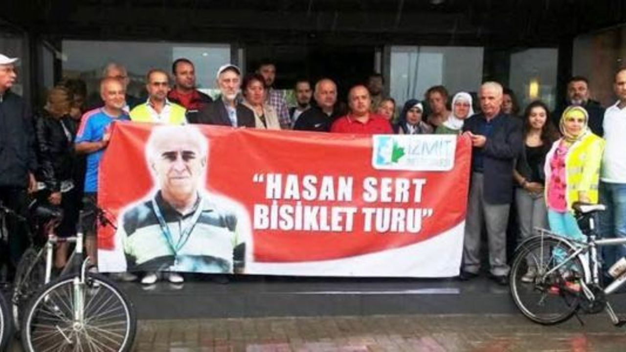 Bisiklet turu öncesi İzmit Belediyesi’nin ev sahipliğinde Yahya Kaptan mahallesindeki bisiklet trafik eğitim merkezinde Hasan Sert için anma etkinliği düzenlendi.