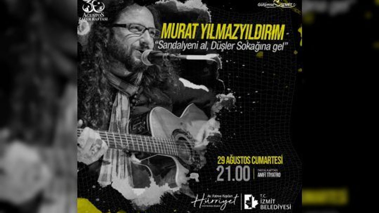 İzmit Belediyesi 30 Ağustos Zafer Bayramı coşkusunu en üst noktada yaşatmak için birbirinden keyifli konserlere imza atıyor. Bugün saat 21.00’da Outlet Center’daki Yüksek Sadakat ile başlayacak konser zinciri yarın Yahya Kaptan Amfi Salonunda saat 21.00’daki Murat Yılmazyıldırım konseri ile devam edecek. Özellikle 90’lı yıllarda Düş Sokağı Sakinleri grubuyla akıllara kazınan şarkılara imza atan Murat Yılmazyıldırım vatandaşlara unutulmaz bir akşam yaşatacak.