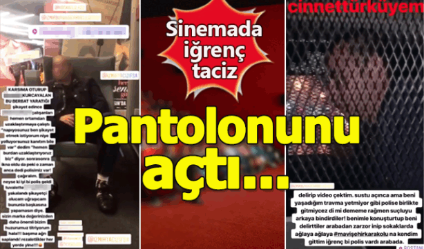 İddiaya göre tacizci, genç kadının karşısına oturup pantolonunu açıyor, cinsel organını çıkarıyor. Şikayet edilmesinin ardından, sinema çalışanları polise haber vermek yerine tacizciyi dışarı çıkardı.